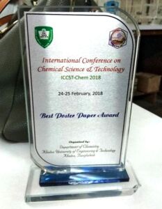 Tanvir Ahmed won the ‘Best Poster Paper Award’ at the International Conference on Chemical Science and Technology held on February 24-25, 2018 at Khulna University of Engineering and Technology.